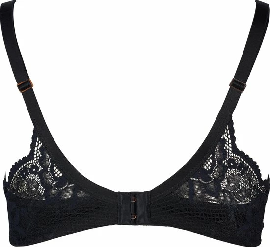 Full cover voorgevormde beugelBH – met sexy kanten details op de rug. De hoge cups met een extra verstevigd stuk onder de cups wat zorgen voor een hoog draagcomfort. De BH – is afgewerkt met een strikje van satijn tussen de cups en als extra sprankelend detail een strassteentje. De schouderbandjes zijn verstelbaar.