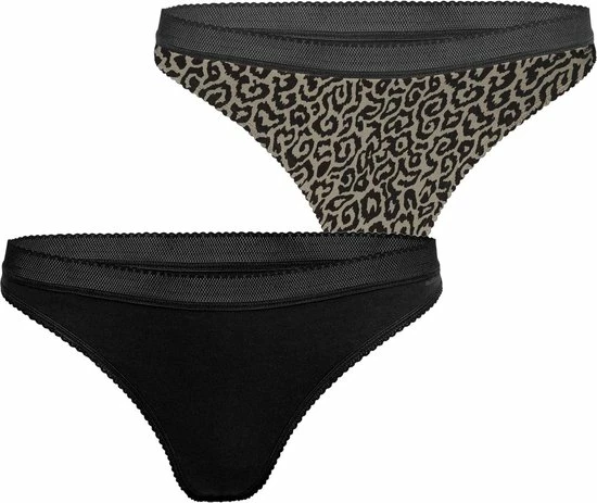- Fijne elastisch katoenen string in een panter print en zwarte uni kleur