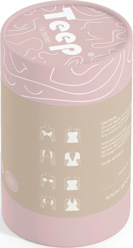 Waarschuwing! Niet toepassen op een gevoelige huid. Test de boob tape op een klein huidoppervlak en stop het gebruik bij enige irritatie of rode huid.