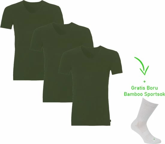 Beste deal π€© Boru Bamboo Bamboo T-Shirt – V Hals – Super Zacht – Antibacterieel – Perfect Draagcomfort – 95% Bamboo – 3 Stuks – 1 Paar Bamboo Sokken Cadeau – Khaki – XXXL π