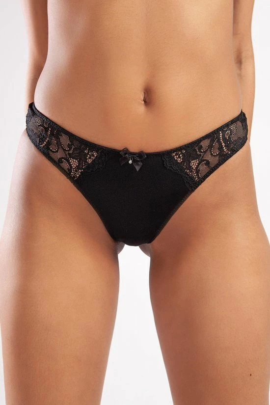 Zacht kant en een sexy uitstraling, search no more: deze string heeft het beste van beide. Ultiem comfort, verfijnd kant en een lief strikje, het kan eigenlijk niet ontbreken in je lingerie collectie. Ondergoed dames