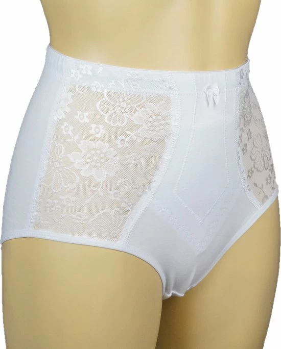 5 -Pack elastische dames tailleslips met licht corrigerend voorstuk en kanten zijstukken van J&C Underwear, gemaakt van 95% Katoen en 5% Elastaan.