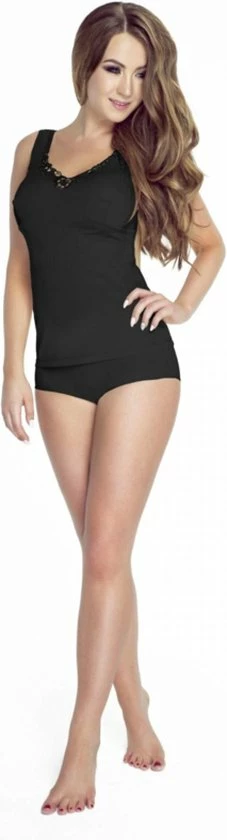 Het Olimpia topje van VISTEXยฎ vegan zijde dat aangenaam aanvoelt, is de perfecte keuze. Dankzij zijn unieke eigenschappen zorgt het voor je lichaam. Het is een hypoallergeen en antibacterieel weefsel van natuurlijke oorsprong, dat niet elektriseert en warmte uitstekend geleidt. Brede banden en verlaagde taille garanderen gebruiksgemak en bewegingsvrijheid. Elegante, rijk versierde guipurekant trekt de aandacht en het gebruik van een snit onder de buste accentueert de borsten op subtiele wijze. Het top past perfect onder kleding en kan een onafhankelijk stylingelement zijn, bijvoorbeeld als top onder een jas of vest. Olimpia is een topje voor iedere vrouw, ongeacht de maat.