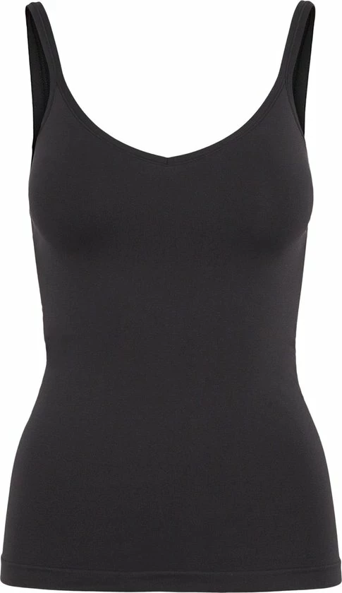 Dit topje is naadloos dus perfect om ergsn onder te dragen. Het hemdje heeft spaghettibandjes en een v-neck.
