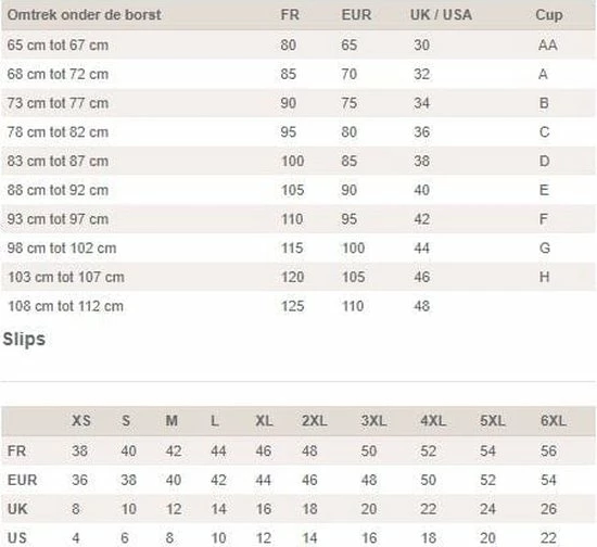 | Maat | Huid, Ivoor, Rood, Wit, Zwart, Framboos, Kaki, Night Grey, Topaz Blue |