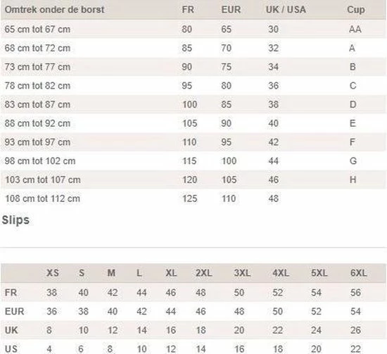 | Maat | 70D, 70E, 70F, 70G, 75C, 75D, 75E, 75F, 75G, 80C, 80D, 80E, 80F, 80G, 85D, 85E, 85F, 85G, 90D, 85C, 90C, 90E, 90F |