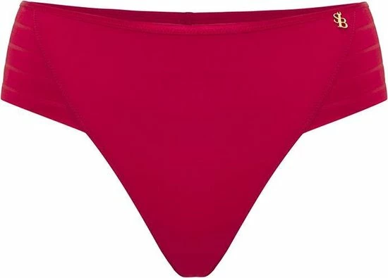 Deze Iconic String Rood van Sapph is gemaakt van een glanzende stof op het voorpand. De heupband heeft een gestreept mesh patroon. Dit mesh patroon loopt door naar de achterkant. De string zit erg comfortabel en is niet te zien onder je kleding. Perfect te combineren met een bh uit de Iconic serie. Bekijk hier de gehele collectie uit Iconic serie van Sapph. Materiaal: 46% Polyester, 35% Polyamide, 12% Elastaan, 7% Katoen. De Iconic Basics zijn een vast onderdeel van de collectie. Vijf bhβs en vier slips in verschillende pasvormen en afwisselende kleuren, zodat iedere vrouw een comfortabele maar mooie basic kan kiezen. Daarnaast is er volop keuze in vernieuwende designs die variΓ«ren van romantisch tot stoer en gewaagd. Sapph lanceert collecties in verschillende βdropsβ gedurende het jaar. Ons wasadvies voor lingerie en badmode is altijd handwas. Tip: bestel voor je delicate was een heerlijke fles SOAK , hiermee kun je je was in slechts 15 minuutjes laten βsoakenβ en bespaar je ook nog eens veel water. SOAK is goed voor je delicate was en voor het milieu! Bij Sapph staat jouw vrouwelijkheid centraal. Ieder lichaam heeft haar eigen vorm en bijzonderheden. In welk βhokjeβ dat van jou past, doet er bij Sapph niet toe. Jouw vrouwelijkheid is het enige dat telt. De lingerie is namelijk bedoeld voor iedere vrouw die graag lekker in haar vel zit, die trost is op wat ze in de spiegel ziet en die mooi is van buiten Γ©n van binnen! Het aantrekken van de juiste lingerie maakt je dag een stukje mooier, net zoals een good hair day of een welgemeend compliment. Het geeft je zelfvertrouwen en het gevoel dat jij mag zijn wie je bent. Voel het van binnen en straal van buiten!