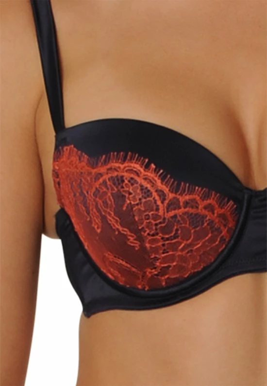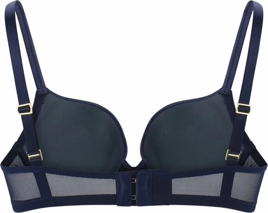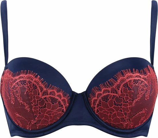 Deze navy voorgevormde BH met felroze cups van satijn is een opvallende en krachtige BH! De sterke beugel in de BH zorgt voor een goede ondersteuning zonder dat het onaangenaam aanvoelt. De beugel zorgt voor een natuurlijke lift en geven vorm aan de borsten. De cups zijn bedekt met felroze kant en creΓ«ren een krachtige look. De achterkant van de BH is van mesh-stof en zorgt voor rekbaarheid waardoor je je goed kan bewegen. Ook heeft deze BH navy cheeky straps van satijn die voor een luxe en elegante uitstraling zorgen. De vormgevormde beugel BH zorgt voor een perfecte ondersteuning voor alledaags gebruik en is een echte must in jouw lingerielade! Combineer deze BH met de Ludivine slip of string om de look helemaal compleet te maken. Ons model is 175cm en draagt maat 75B.