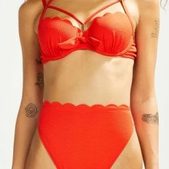 Promo 🧨 Hunkemöller Dames Badmode Hoog Uitgesneden 👙 Bikinibroekje Scallop – Rood – Maat M 👍