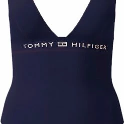 Met dit halter badpak van Tommy Hilfiger ben jij helemaal klaar voor de zomer! De mooie donkerblauwe kleur, het model en de logoband onder de borst geven het badpak een luxe uitstraling. Het badpak heeft een diepe hals, lage rug en een striksluiting in de nek. Door het elastische materiaal vormt het badpak zich mooi om het lichaam en voelt het zeer prettig op de huid. Het badpak is gedeeltelijk gemaakt van gerecycled polyester, fijn voor jou Γ©n het milieu dus!