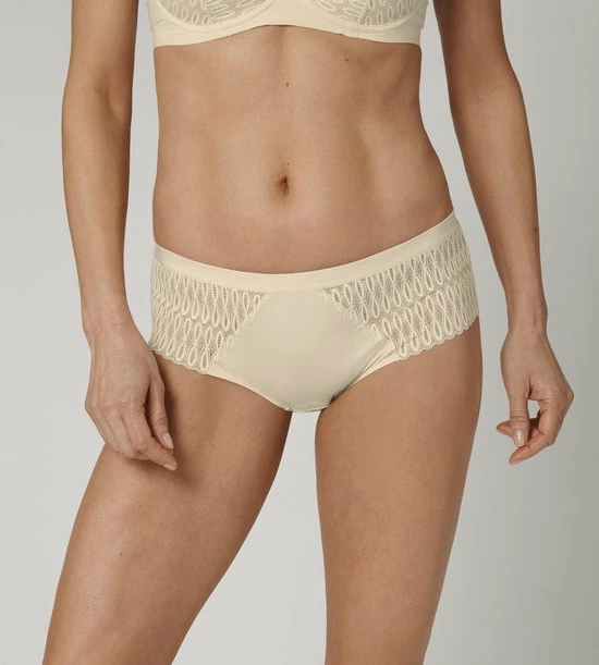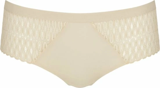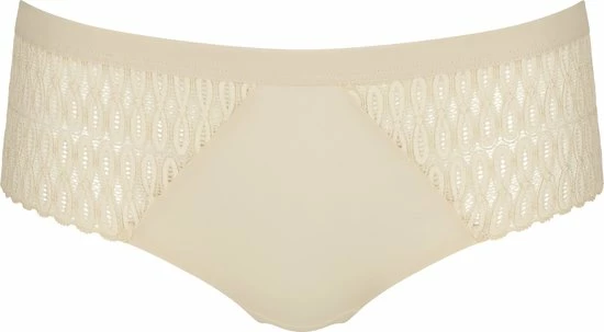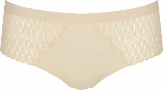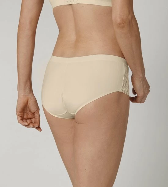 81% polyamide 19% elastan, microfiber dames hipster met elastische bandje van Triumph met een chique kanten inzet