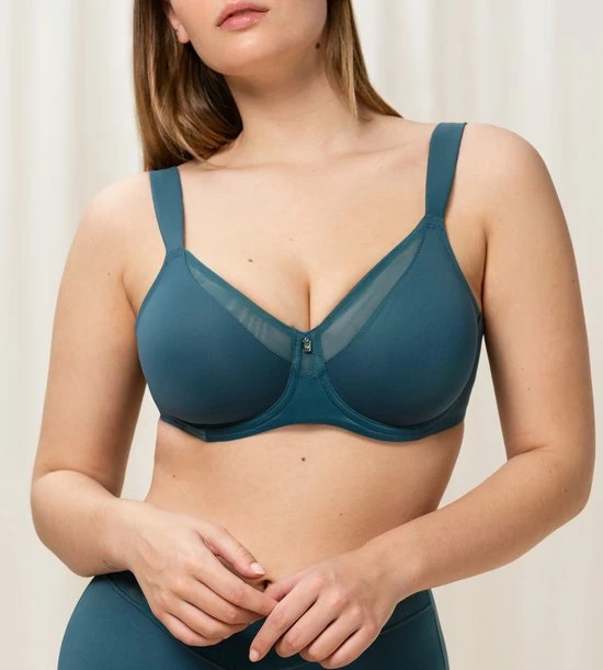 • Niet-gevoerde cups van zachte, ondersteunende jerseystof met tulerand aan het decolleté