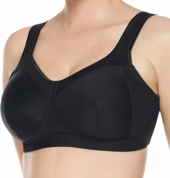 Sport- en reliΓ«fbeha met vierdelige cups van Ulla. Lingerie , die de buste volledig omsluiten. Een zijpaneel stabiliseert. Dankzij de open weefselstructuur biedt de bh zonder beugel een optimaal vochttransport en dus een aangenaam draaggevoel, zelfs bij zeer hoge fysieke belasting. De brede, ergonomisch gevormde comfortbanden zijn zacht gewatteerd en ontlasten de schouders zonder in te snijden.